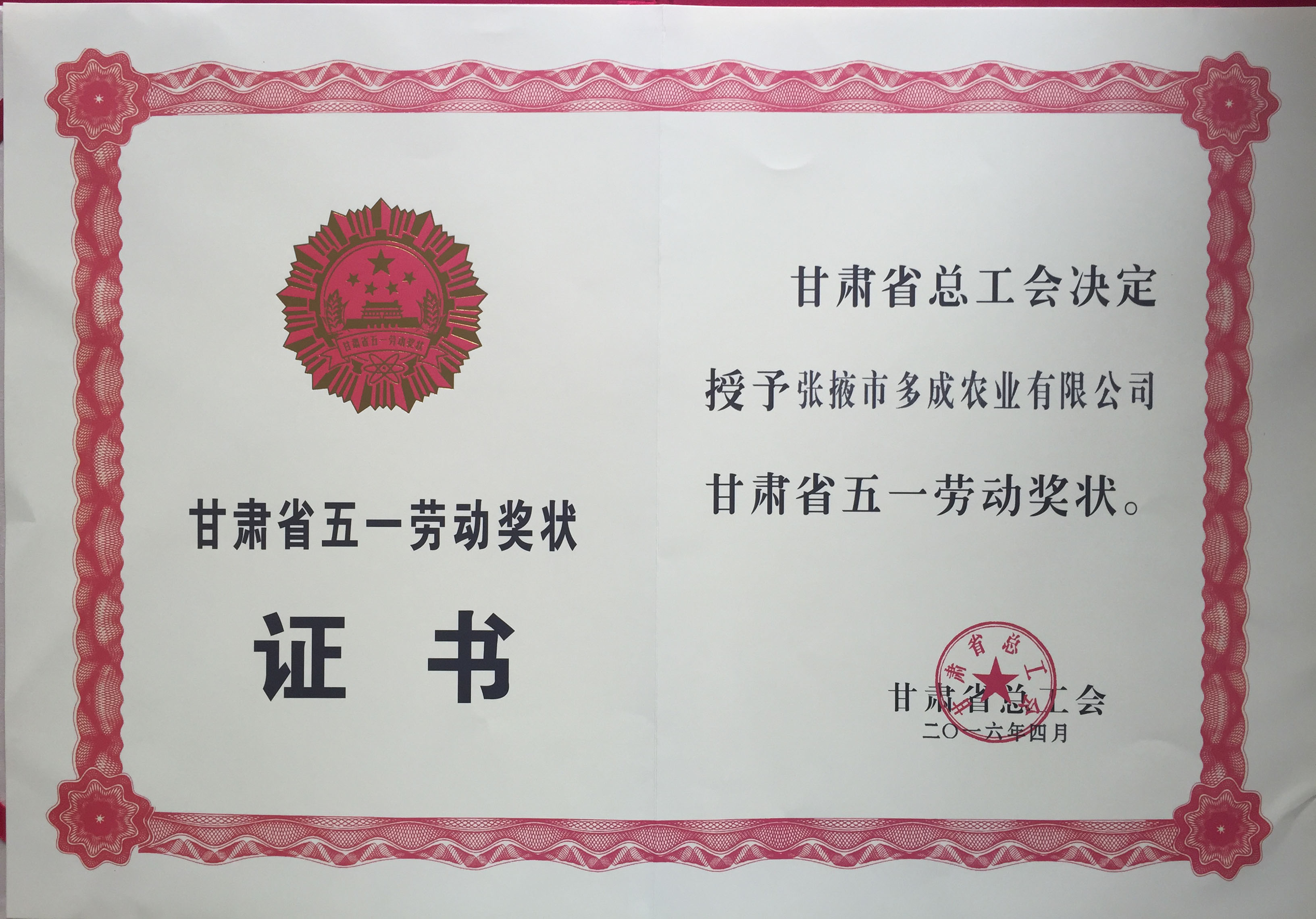 | 熱烈祝賀張掖市多成農(nóng)業(yè)有限公司榮獲甘肅省五一勞動獎狀 | ||