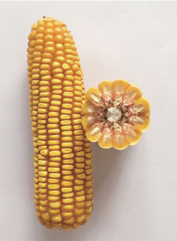 特征特性:幼苗葉鞘紫色,葉片綠色。株型半緊湊,株高232cm,穗位高79cm,全株葉片數(shù)15-17片,雄穗分枝數(shù)4-6個(gè),花藥黃色,穎殼綠色,花絲紫色;穗錐形,穗軸紅色,穗長14.6cm,穗粗4.5cm,軸粗2.6cm,穗行數(shù)14,行粒數(shù)33粒;籽粒黃色、半馬齒型,千粒重323.6g,出籽率89.3%;成株根系發(fā)達(dá),莖稈堅(jiān)韌,抗倒伏。高抗瘤黑粉病、莖基腐病和絲黑穗病,中抗大斑病。甘肅春播生育期90-95天,屬極早熟品種。適宜在海拔1800m以下,≥10℃有效積溫達(dá)2200℃以上,雨量充沛或有灌溉條件的西北春播區(qū)種植。 產(chǎn)量表現(xiàn):2015年品比試驗(yàn)在密度6000株/畝下,平均畝產(chǎn)達(dá)899kg;8000株/畝下,平均畝產(chǎn)達(dá)947kg。 |